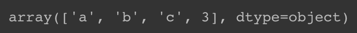 numpy.adarray도 모든 element의 타입이 동일해야 하는데, 모든 숫자를 문자열로 바꿀 수 있다. 숫자만 있던 ndarray에 문자열이 들어가면 모든 숫자를 문자열을 해석해서 array의 요건을 맞춘다.