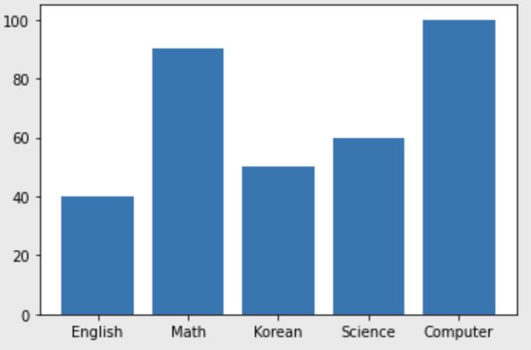 bar(): 그래프를 그리는 메서드로, 인자 x, y값이 들어간다.