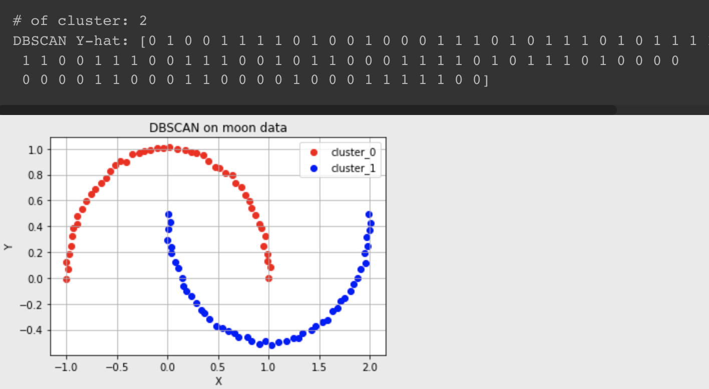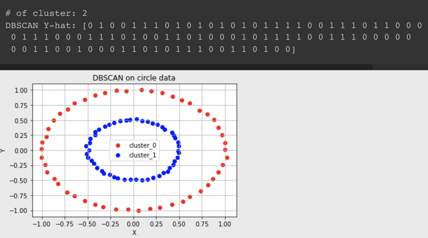 print(f'DBSCAN Y-hat: {circle_dbscan.labels_}')