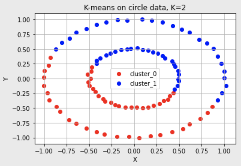 그러나 K-means가 동작하지 않는 경우도 있다.