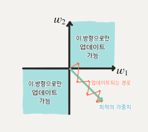 또한 시그모이드 함수의 출력은 0이 중심(zero-centerd)가 아니다. 그래서 훈련의 시간이 오래걸리게 된다.