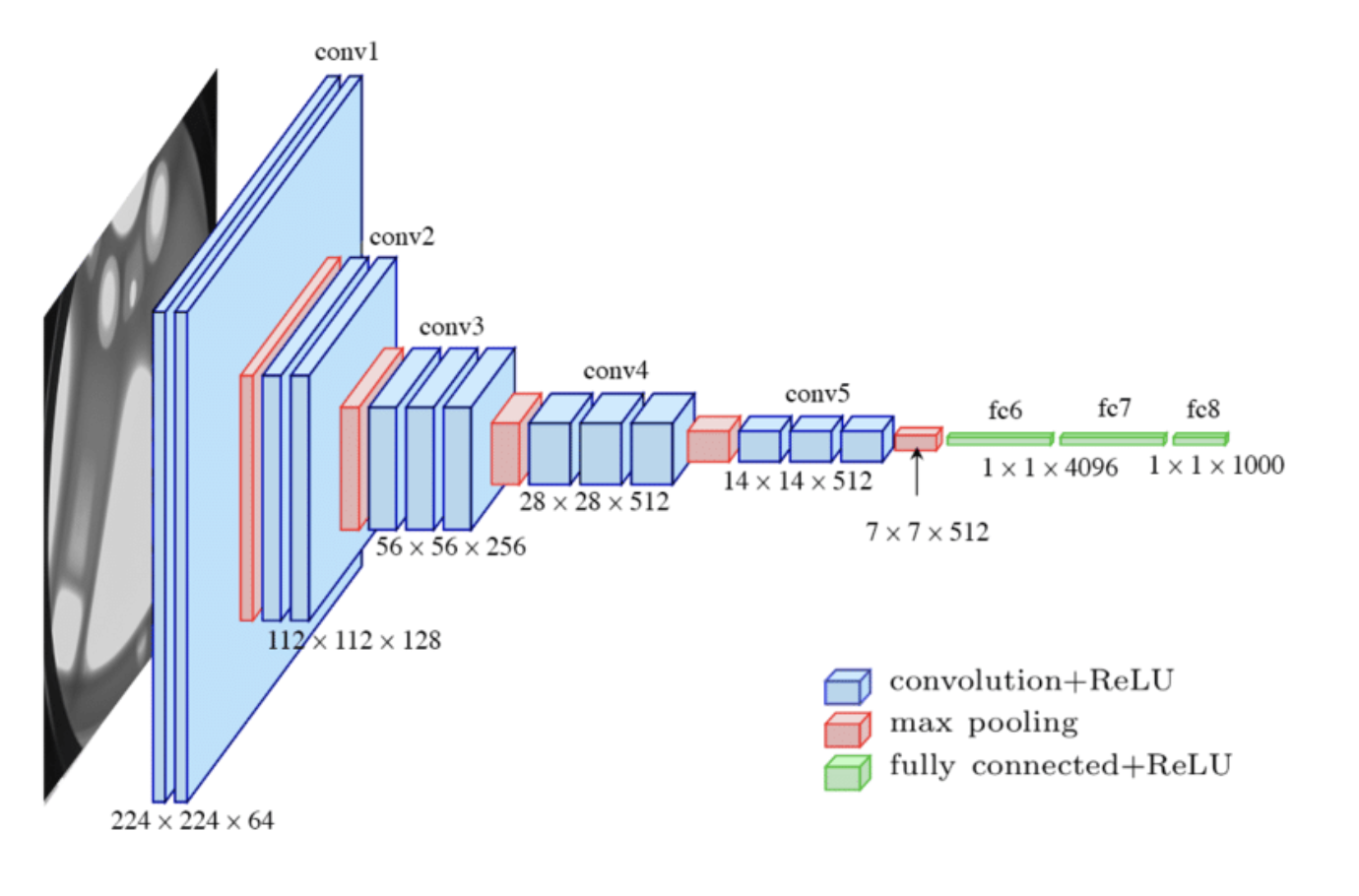 아래는 이미지 처리에 많이 쓰이는 VGG16 모델이 이미지를 받아 처리하는 과정을 설명함